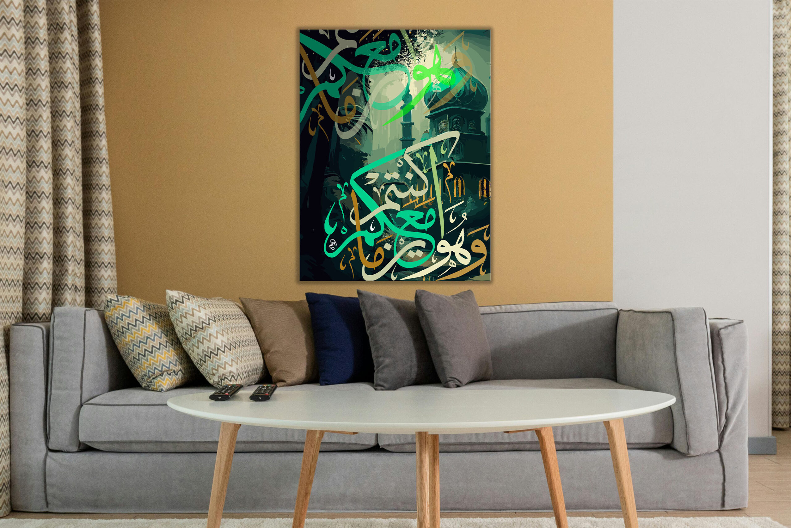 • Poster & Wall ArtExcellent for modern home décor, offices, or cultural centers. (Perfect for the living room/sofa mockups you provided).